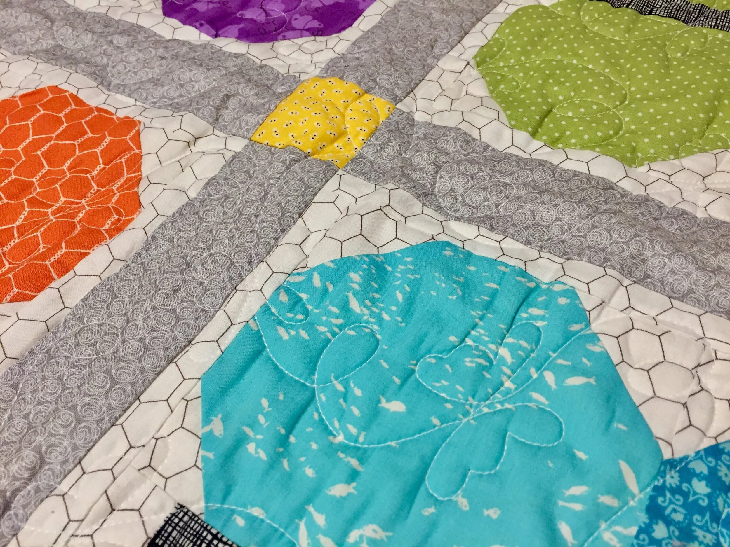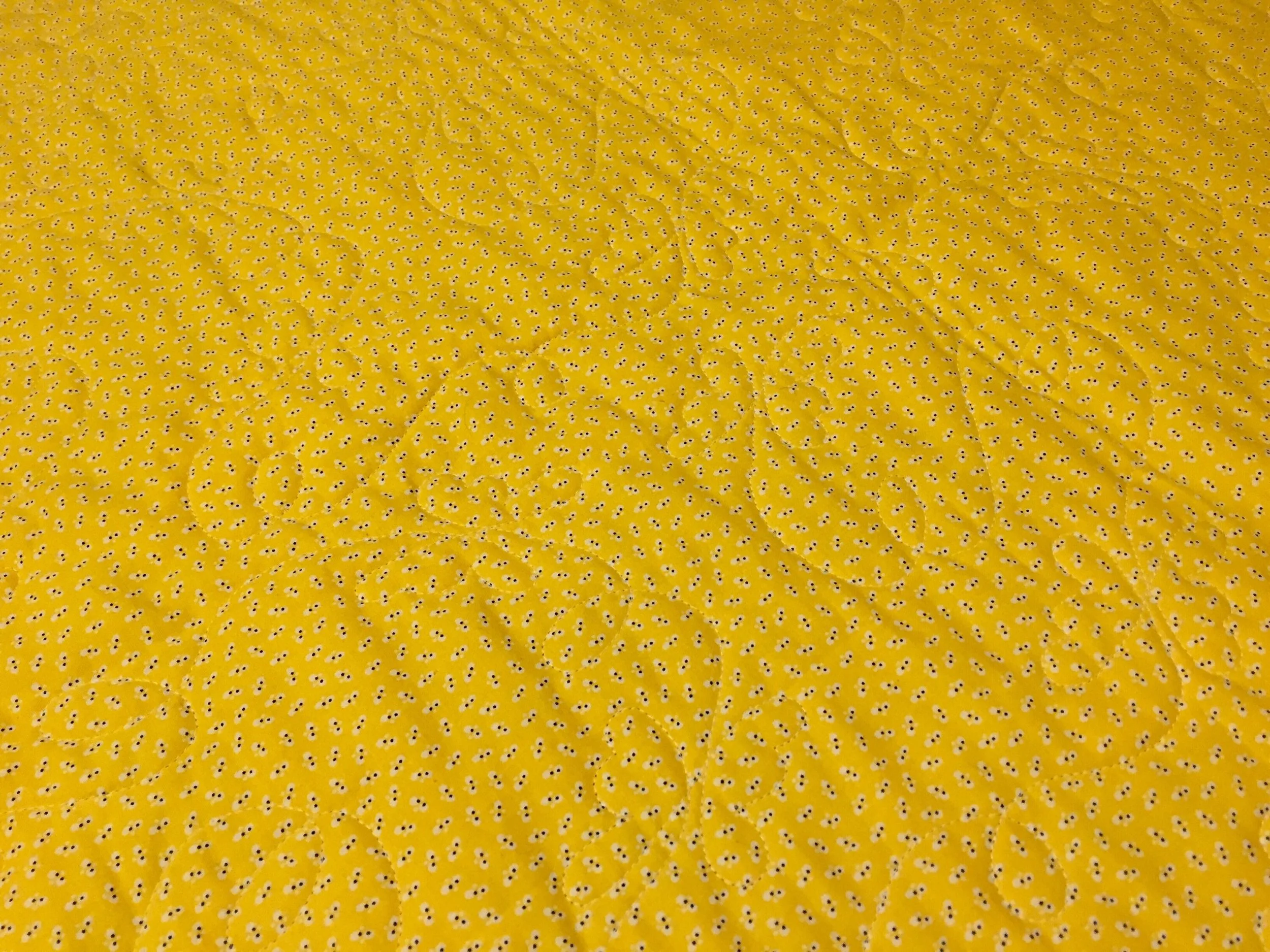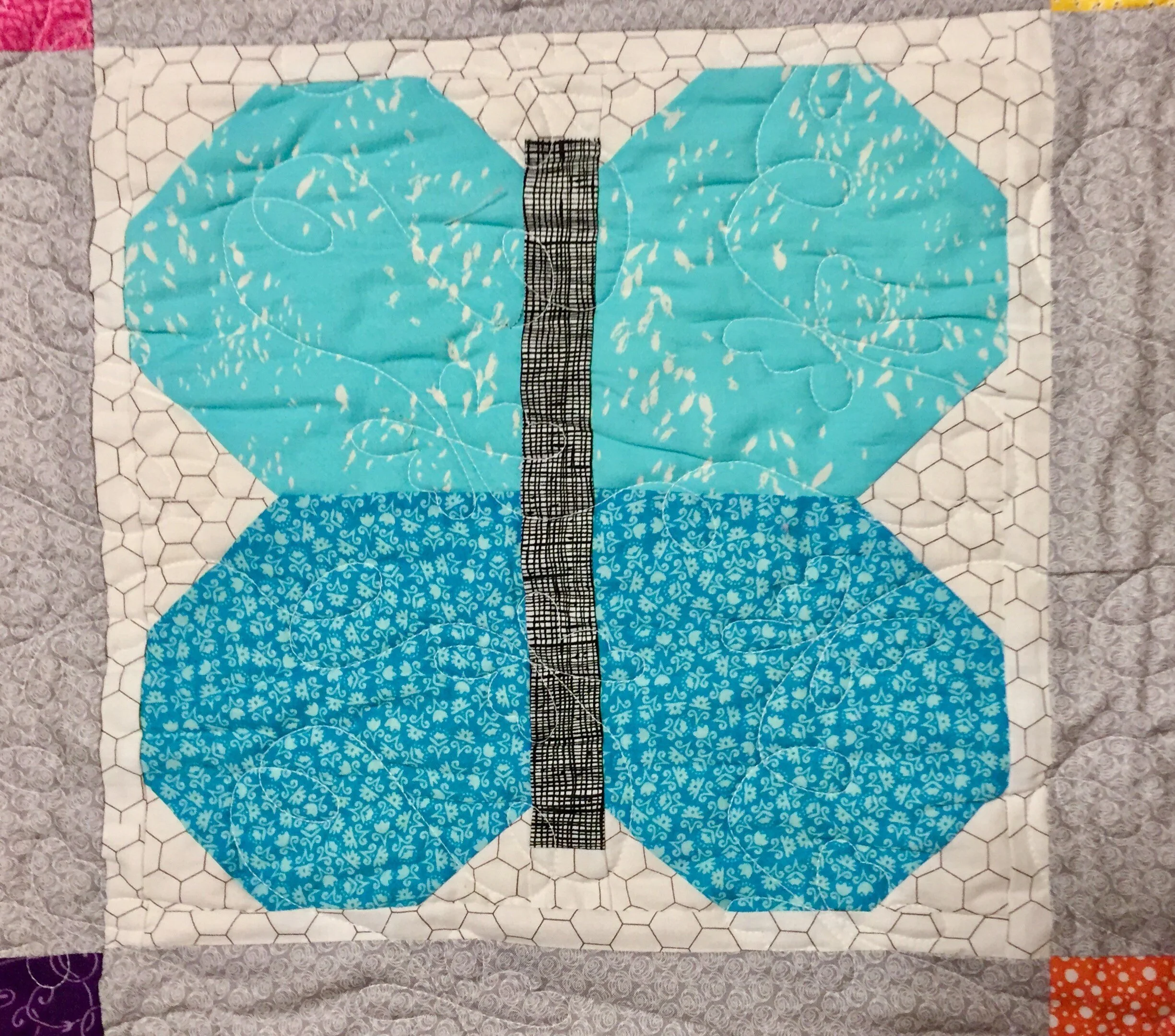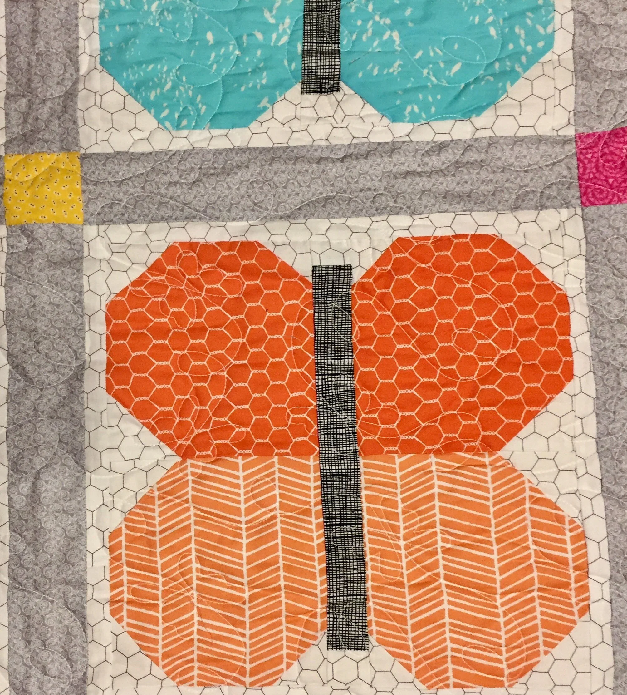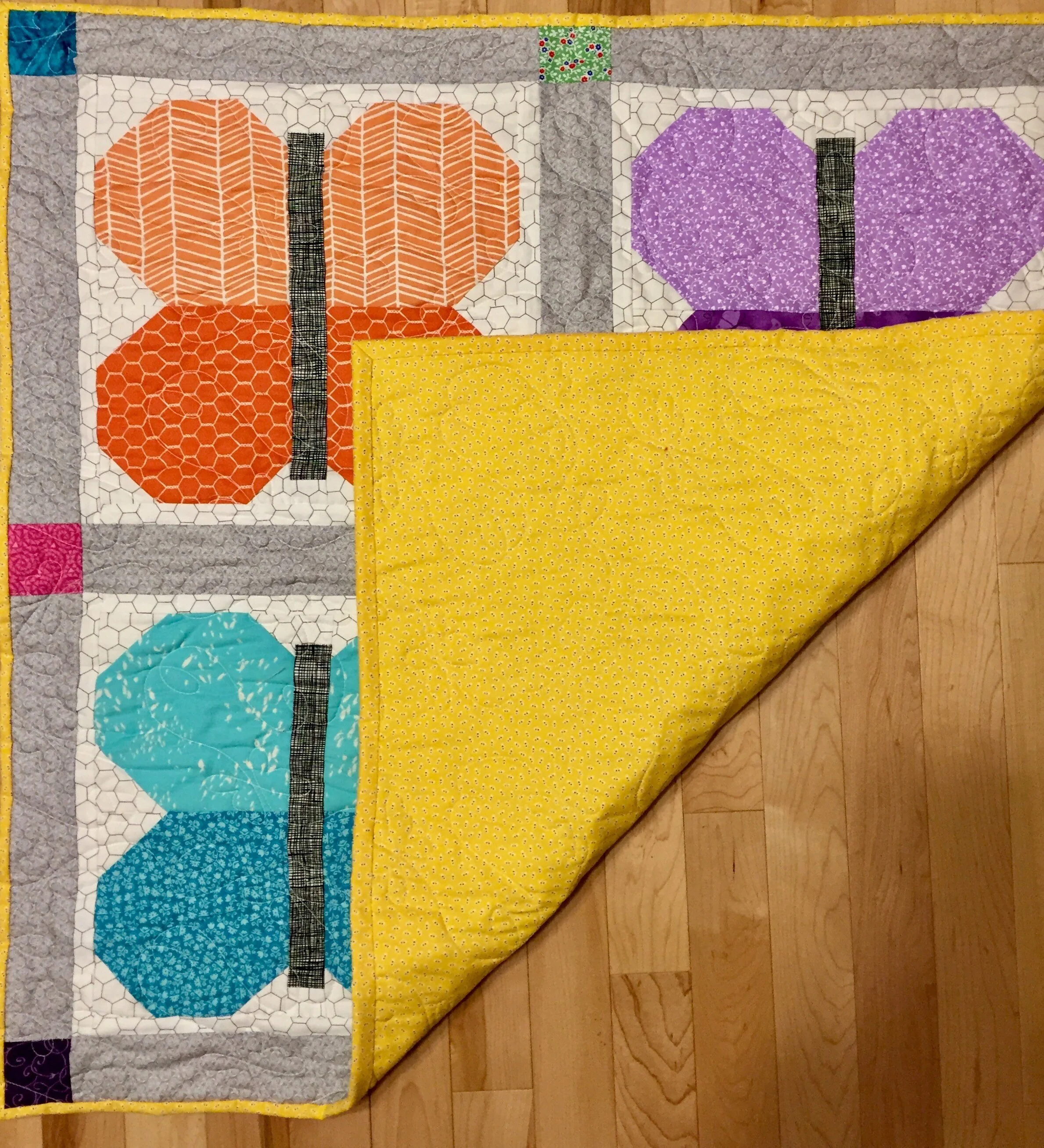 This handmade quilted wall hanging is made from cotton quilting fabric, cotton batting, and white cotton thread. It is quilted with a butterfly meander pattern and the binding is machine-stitched onto the front,and hand-stitched on the back for a neat and clean finish.