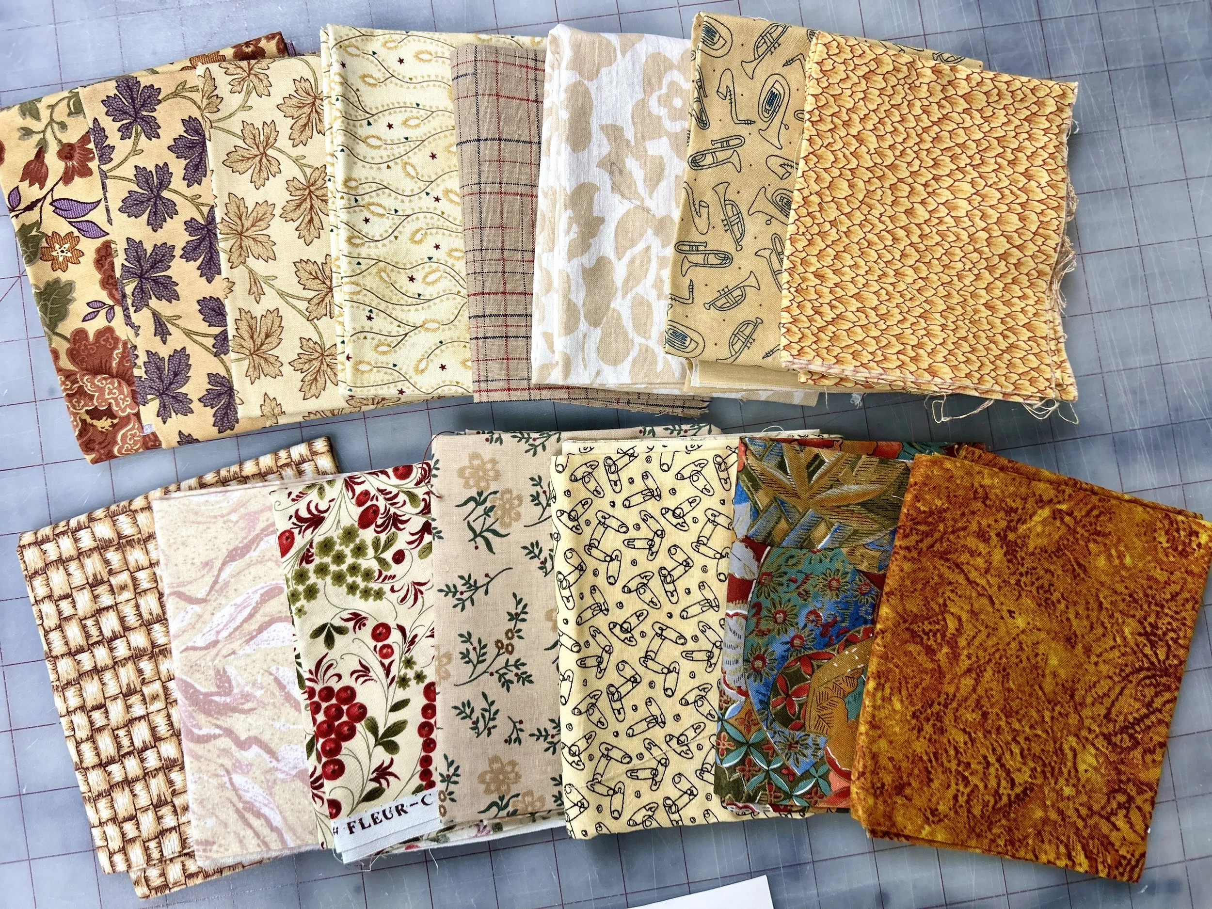 This Jelly Roll includes 20 - 2 1/2" strips of white, gold, silver fabric