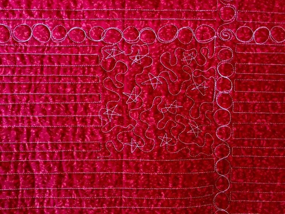 This handmade quilted wall hanging is made from cotton quilting fabric, cotton batting, and cotton thread. It is freehand quilted with a variety of quilting designs including stars, stripes, and circles. The binding is machine-stitched onto the front, and hand-stitched on the back for a neat and clean finish. Great addition to your summer decor!