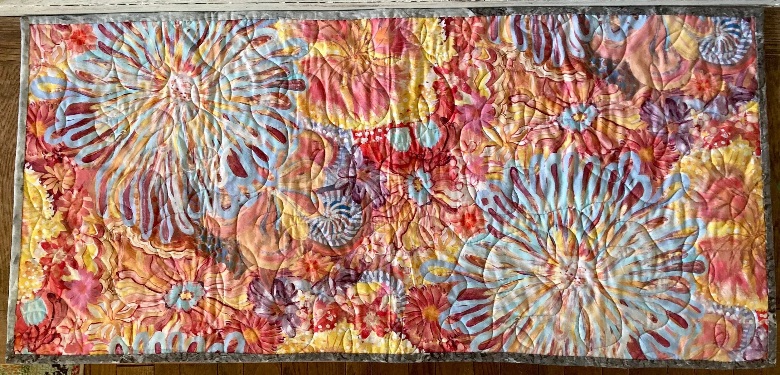 Adorable piece to add to your decor! The backing fabric is so beautiful that this is reversible table runner!